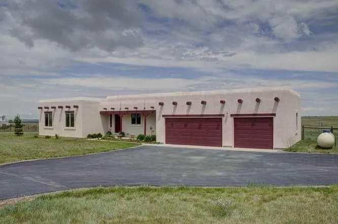 3 bedroom, 2 1/2 bath Santa Fe home sitting on 40 acres. The wood beamed ceiling in the family room and rounded doorways add to the open floor plan of this well-built country home. There is a beautifully tiled eat-in kitchen with walk-in pantry and separate dining area. The master bedroom includes an adjacent study that could also be used as a master retreat. The master also includes a walk-in closet and master bath. The attached 3-car oversized garage gives ample space for automobiles and extra storage. Adjacent 40 cares also available for an 80 acre property. The property is completely fenced and includes a great space for horses in the 4-stall barn. It is approximately 1,200 sq. ft. with plenty of room for equipment, feed, or a workshop and has power and water already installed. The land is zoned for livestock so bring your horses, cattle, etc. This Elbert County home just south of Fr...