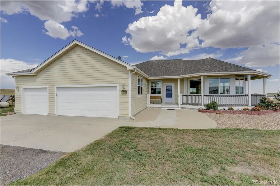 Charming home on 8 acres! 5-bed, 3-bath home has an open ranch layout that is full of natural light. You'll fall in love with the living room's bay windows to enjoy the views. Kitchen features beautiful oak cabinets, spacious countertops and breakfast nook. Dining room great for entertaining. Study perfect for a home office or bedroom. Retreat to the oversized master suite with bay windows and easy access outside to the gorgeous wrap around deck. Imagine soaking up the morning sunrise over a cup of coffee! Master has 5-piece bathroom & large walk in closet. Finished walkout basement has 2 additional bedrooms with plenty of closet space for storage. Full bathroom in basement ideal for guests. Family room offers flex space for movie and game nights with family and friends. Basement overlooks concrete patio. Cul-de-sac location & 3 car garage. Large barn on property has a shop with bathroom, shower, wood stove & solar hot water heating system. NO HOA. Property zoned for horses & animals.