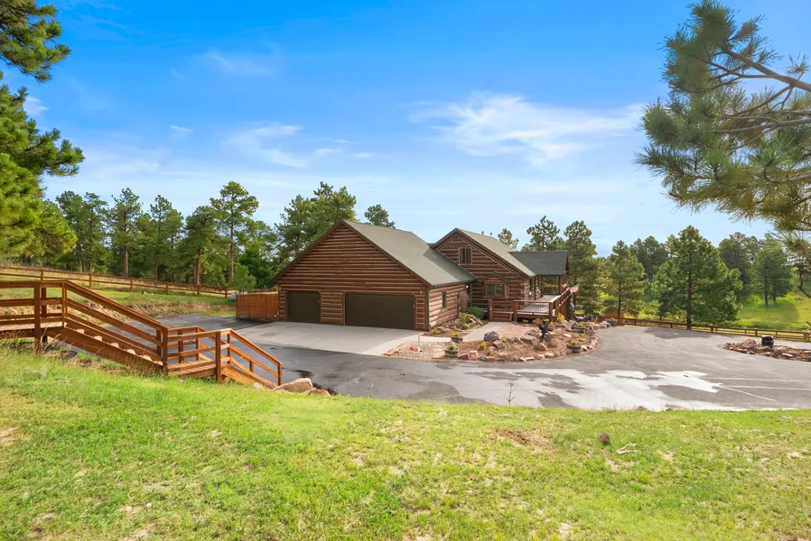 Come home to this STUNNING CUSTOM LOG HOME nestled on 35 acres of fully fenced land. Secluded yet conveniently close to town, this extraordinary property boasts a wooded terrain adorned with majestic and pines, creating a picturesque backdrop. The land is graced with a tranquil water ravine washout, adding to the natural charm. Nature enthusiasts will delight in the abundant wildlife that frequent the area. Step inside this 4 bedroom, 4 bath home with vaulted ceilings flowing with natural light from all the strategically placed windows that perfectly frame the serene surroundings. Embrace the outdoor beauty from the wrap-around porch, providing a space for relaxation.