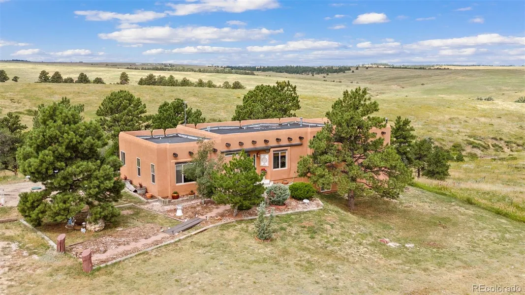 This Off-the-Grid homestead is an oasis for those who love the outdoors and want to live a quiet, secluded life. Sitting on 320 acres about an hour south of DIA in a remote area of Colorado, the land is surrounded by endless rolling hills, lush meadows and ponderosa pines. There is a river bed that flows throughout the land, giving life to the most beautiful foliage and greenery. Enjoy a variety of activities, including hiking, camping, hunting, star gazing, and horseback riding. The 40'x60' metal barn with an attached loafing shed near the house is great for storing equipment, animals, or products. The property is zoned agricultural and is currently used for cattle grazing, benefiting from low tax rates. The natural elements of this custom Spanish/SW home creates a cohesive design bringing outdoor elements in. Upon entering, you are greeted with large exposed wood beams and handmade mos...