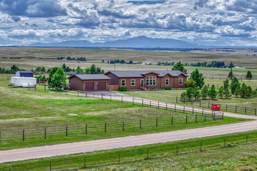 Welcome to your opportunity to claim your stake in picturesque Kiowa, CO! This delightful 3-bedroom, 2-bathroom home is nestled on an impressive 11.54 lot. The stunning views of Pikes Peak and the front range will take your breath away while you are sipping your morning coffee or relaxing after the day watching the sun set or if you have a passion for the equine life you can ride into the sunset! Step inside to discover a warm and inviting interior featuring a wood burning stove to warm up in the upcoming Colorado fall evenings. The kitchen is a highlight, complete with an island, plenty of counter space and storage for your kitchen gadgets, pantry, and a full suite of newer stainless steel appliances including a refrigerator, stove, microwave, dishwasher, and disposal. For more formal occasions, enjoy the separate dining room with plenty of natural light not to mention the natural light...