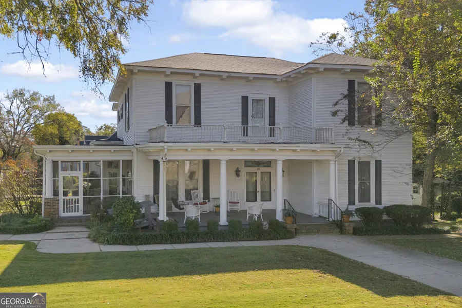Step into timeless elegance in this stately historic home, rich in the original character & and craftsmanship of the early twentieth century. Visitors are welcomed by the relaxing front porch and original double doors, accented with beautiful leaded glass. Once inside the foyer showcases exquisite pocket doors, vibrant stained glass and a grand staircase, the perfect backdrop for family photos. Throughout the home you will find soaring ceilings and rich heart pine floors, along with the original mantels & period-era details around every corner. Featuring 4 spacious bedrooms, with the primary suite on the main floor & 3.5 baths, this residence offers room to live and entertain in comfort. The kitchen is a chef's dream, with an abundance of cabinet space and thoughtful design throughout. There is even a convenient side porch off the kitchen which is ideal for enjoying morning coffee or eve...