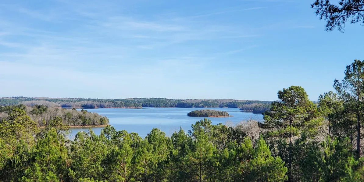 Awesome view from hilltop home site. 12-15 acres open land for horses or cattle. For the hunter, (SEE THE PICS) unbelievable deer and turkey population and wildlife habitat. Boat ramp 1 mile down the road to enjoy pristine Lake Russell for fishing and boating. E...