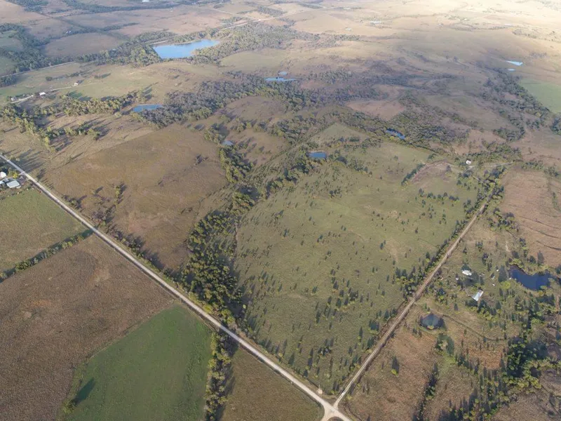707.5+- acres of diverse Elk County Kansas ranch land. On the agriculture side, there is a good combination of brome/fescue mix and native bluestem pasture. 11 ponds provide water in addition to 2 rural water meters and automatic freeze proof waterers. Current owner has utilized the property for winter livestock grazing. Fences range from new to average through the property. There are multiple grazing units that would allow for year round rotational grazing. A rotational grazing program would allow you to take advantage of the cool season grasses for hay, early, and late grazing, with the native pasture utilized for summer grazing. There is a building and panels at the south end of the property along HWY 160, and a feeding station at the north end of the property off of Road 8.