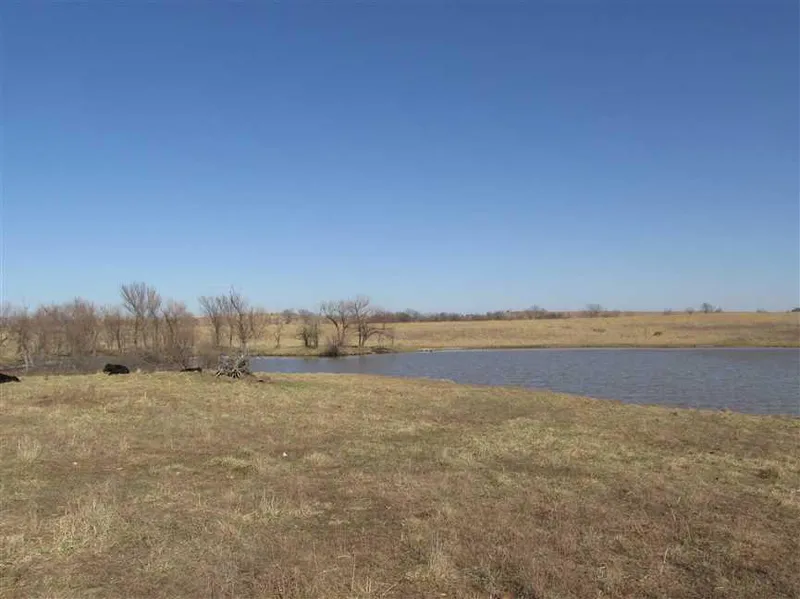 The smaller property is 40 +/- acres of native grass with a large pond, and it has road frontage on two sides providing easy access. There is a beautiful building site overlooking the pond and rural water and electricity is available.