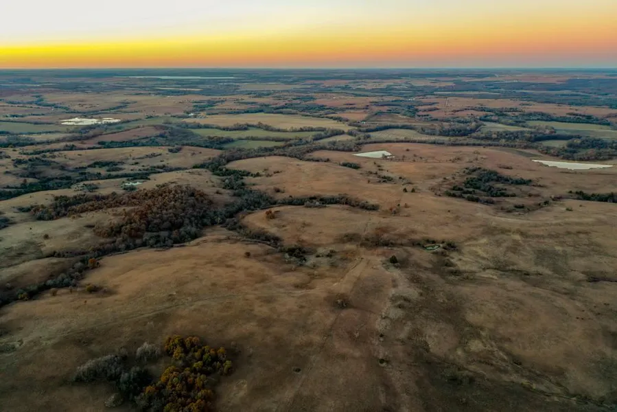 Turning south off 400 Highway through the quaint town of Fall River that offers an incredible grocery store, diner and fuel, continue south along the blacktop for 2 miles. Turning east along Quail Road, you can feel the remoteness and with all the dynamics, see that this area is special and hard to come by. Quail Road wraps alongside Indian Creek that flows into Fall River as it cuts through the bottom tillable fields and heavily wooded timber stand, then climbs to the hilltop where the 520 +/- acres are located. Turn in the south entrance and take in the endless views that fall off towards the north and west. From the roadside, visibility is limited with the landscape, providing ideal protection.