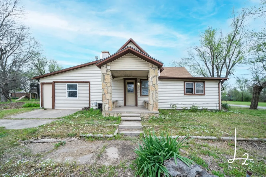 Large shaded corner lot with lots of mature trees and interesting landscaping. This older home, built in 1900, is waiting for your finishing touches. Well laid rock fireplace greets you when you enter the living room. A combination of native stone and wood floor finishes the room. The one time garage has been converted into a large family room. The kitchen has a small area for eating. Two nice size bedrooms that share a full bath are on one end of the house while the master bedroom with its own bath is on the other end. The master bedroom has its own door to the spacious back yard that shows signs of once having been loved with a variety of landscaping skirting the house. Most of the flooring have the older hard wood. Some new Pella windows have been added on the east side of the house. The house has some of its needed supplies to make it beautiful again included in the purchase.
