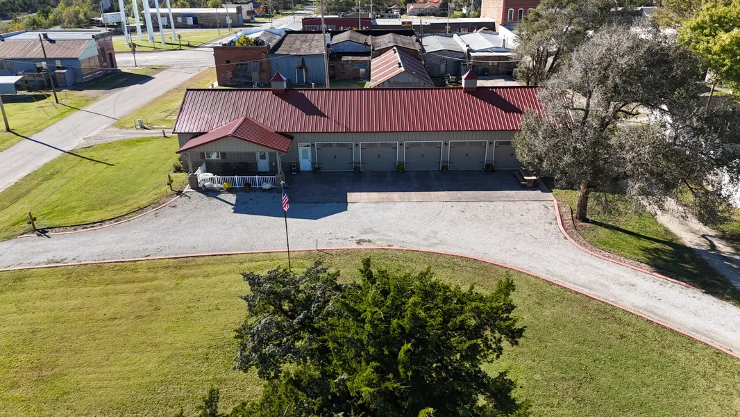 Welcome to this exceptionally crafted home. The property features a 1020 sq ft residence with a 5-car garage and living quarters, ideal for guests. The 5-car garage is fully heated. Upon entering, residents are greeted by rich wood and flooring. From the ceiling to the cabinets and granite countertops, the character of ambiance and comfort is evident throughout the entire space. The property features a stamped, stained parking lot. The covered porch offers a quiet, peaceful setting with well-maintained landscaping. A large adjacent lot presents an opportunity for a commercial or residential development. This property is highly recommended; for a private showing, contact Mark Jones at 620-249-9305.