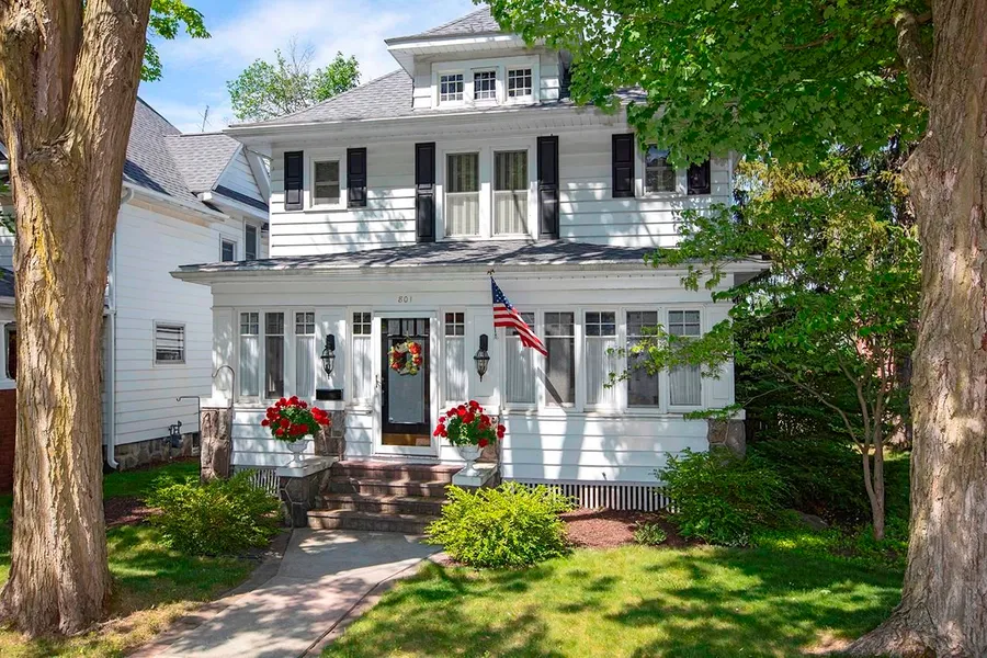 There is no surface untouched! You will be in awe of the condition and love put into this spectacular home. Enclosed porch perfect for spending your Spring, Summer and Fall, refinished hardwood floors, open stairway, spacious rooms and lot's of attention to detail in this fabulous home. Large living room, formal dining room, wonderful kitchen loaded with counter space and an island, 2 pantries. back room for an office, hobby space or tv room with a built in desk and bookcase. 1/2 bath and lots of closets space on the main floor. Upstairs has 3 beautiful bedrooms with large closets, full bath and an attic space that has unlimited options for more space. The basement has a finished family room, plus another hobby room and the laundry room. The back yard may be small but it is private and perfect for entertaining with a large deck and a 2 car garage. You won't want to leave once you are ins...