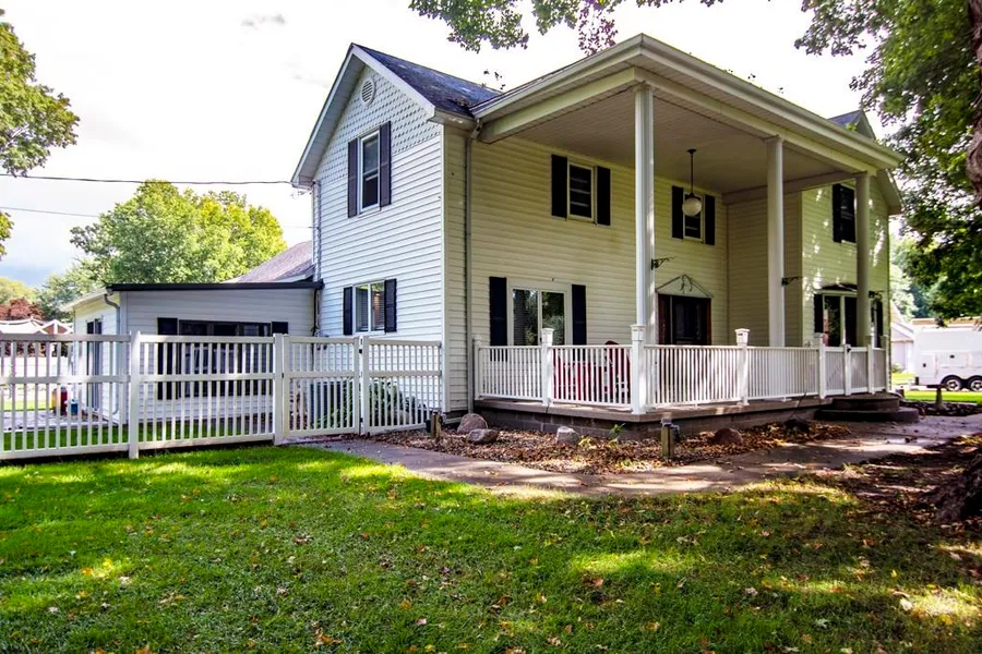 Great 2-story farm home with lots of improvements and upgrades. Main floor Master BR. Newer White Kitchen with granite and Stainless Steel Appliances. Gorgeous hardwood floors on main level. Sprawling Family room with big fireplace would be great for a home theater. current owner updated or replaced mechanicals Parklike backyard with gazebo and in-ground pool is super for entertaining or just chilling out. Garages for 4-6 vehicles, plus a ton of concrete driveway parking. Wonderful 1-BR guest house. 4 outbuildings, include a Small pole bldg., and a quaint little barn that was moved here from Wakarusa.. Surrounded by evergreen privacy. One BR guest house too! This might be a perfect place to live if you also have a small home business. Buyer please Check Zoning. Talk to your broker to see agent remarks, please.