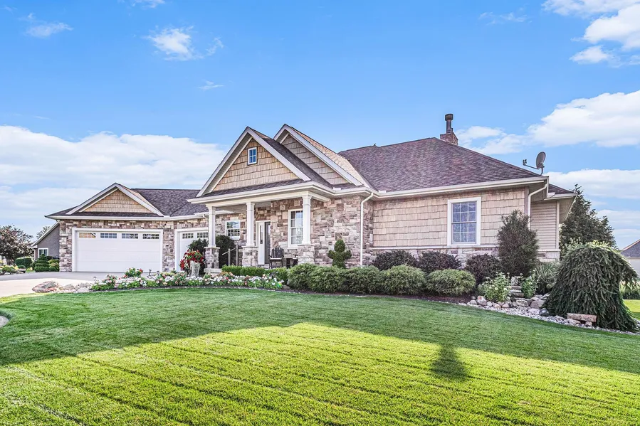 Exquisite 4 BD, 3.5 BA ranch w/3 car attached garage. Lg foyer entry invites you to open concept living. Kitchen/dining room combo. Kitchen is accented by beautiful hickory cabinets, island seating, granite countertops, & corner breakfast nook. Butler's pantry & walk-in food pantry. Main level laundry. Screened porch overlooks picturesque back yard & pond. Hard maple floor, crown moulding, & fireplace give welcoming presence & charm to LR. ML BR suite features lg walk-in closet, amazing shower, dbl sink vanity, granite counter, & heated floor. The finished LL incl 4th BR w/cedar lined closet, full bath, and daylite window. A spacious family/rec room is complimented by a WB fireplace to enjoy cozy evenings. Home warranty & appliances included.