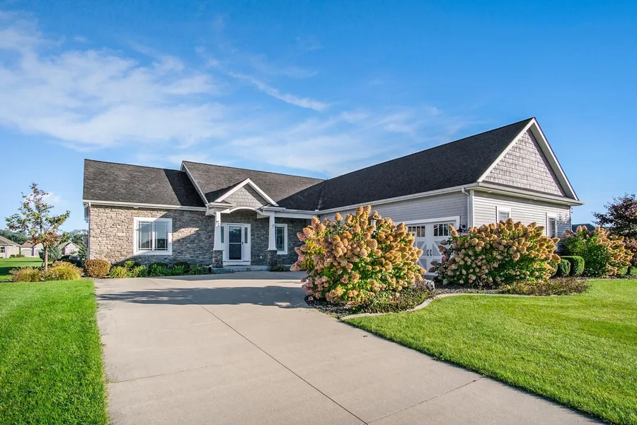 ****Spectacular Stoneybrooke Shores open concept ranch on a beautiful 1 acre lot. Great room with fireplace, hardwood floors, has set of sliders out to a large patio overlooking backyard. Stunning eat-in kitchen. Main level laundry with half bath. Split plan with private master suite on one side of house, has master bath with custom shower, and huge walk in closet. Fantastic finished basement with beautiful custom flooring, family room area, huge wet bar, one of kind home theater, 4th bedroom with egress window and full bathroom. 3 car attached garage, sprinkling system, water softner. Immediate Possession! Pre-approval letter with offers please.