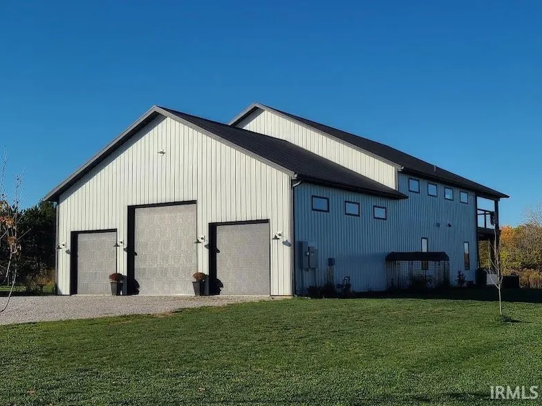 High quality construction pole barn style home new in 2022. Beautiful interior finishes with a great open feel. Enjoy the large kitchen with loads of cabinets, granite tops, stainless steel appliances, undercabinet lighting, open ceiling with wood beams and a walk in pantry. Two bedrooms and one large bath on the main level with open living room overlooking the ground floor 15 x 50 covered porch and pool all with country views of the 3 acre property. Cement floors with radiant heat on the first floor, gas force air on the second floor and central AC throughout. Epic primary suite that encompasses the entire second floor with walk in shower and large walk in closet and has it's own private 15 x 50 covered porch. The main house has an attached 30 x 40 garage including two 12 foot overhead doors and one 14 foot overhead door. The detached 40 x 40 building has an additional 3 car garage and a one bedroom one bath apartment with loft and kitchenette. 2 x 6 walls with great insulation, tankless water heater, RO water system and much more. Located in the peaceful countryside but only minutes to town, shopping, restaurants, golf and lakes. Most of the furnishings are negotiable. Buyer to verify schools.