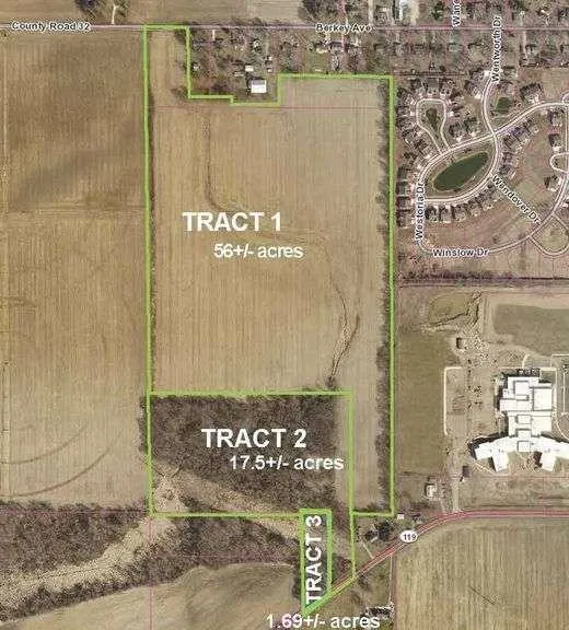 TRACT 1: 56+/- ACRES OF CROPLAND WITH A SOIL INDEX OF 143.4! WITH ITS CLOSE PROXIMITY TO SCHOOLS AND GOLF COURSES, AND A WEALTH OF RECREATIONAL OPPORTUNITIES, THIS PROPERTY IS PERFECTLY SITUATED TO ACCOMMODATE A VARIETY OF USES. PRIME DEVELOPMENT OPPORTUNITY!