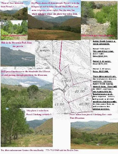 This 45 acre parcel is located in Starr Valley located approx. 30 miles East of Elko, Nevada. It is an old homestead with several outbuildings. Ackler Creek is a year-long stream that passes through the property. Approx. ten acres of this parcel has water rights for irrigation. Power is not far away and the parcel will have a road to county standards to it by the time it's approved by the county. There are two additional parcels that will be available adjoining that don't have any water rights but that do have Ackler Creek running through it and they are priced at $225,000 . each.