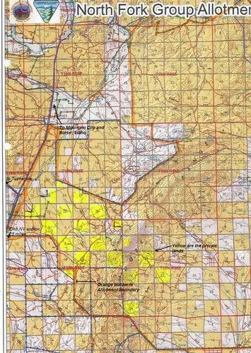 These sections were at one time a Sheep outfits Spring range. It is still used by a leasee. The deeded lands start approx. 15 miles NE of Elko and run over near the Mountain City Highway , State Route 225, that leads to Bruneau and Mtn. Home Idaho as well as to Mountain City, Nevada , Tuscarora and other rural areas. The deeded lands are intermingled with BLM lands and some other private lands. A BLM permit has 944 active aum's which have historically been used for sheep. The permit shows 29% public lands. There are 253 of the active aum's that are in voluntary Non-use since 1988. There is a good chance that most of these aums could be converted to cattle due to the high percentage of private lands. The BLM maps show quite a bit of free water in this area and quite a bit appears to be on the deeded lands. Fifty (50%) percent of the minerals are included in the sale.