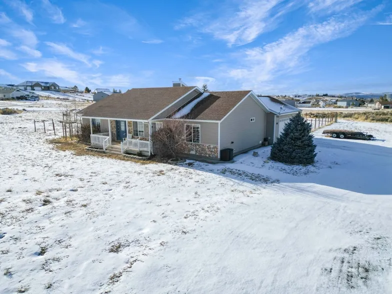 Views! Views! Come sit on this covered front porch and enjoy the beautiful view of the Ruby Mountains and surrounding valleys. This home sits on a level, large corner lot with a fenced back yard and circle driveway. As you enter the large living area of the home you will see the vaulted ceiling and pellet stove and be able to enjoy the view from the living area also. The kitchen has been updated with a large farm house sink, new appliances, wine fridge, and large pantry. The split floor plan offers two nice size bedrooms for guests. The main bedroom is a very spacious and has a beautiful accent wall with built in fireplace feature. The ensuite offers a large walk in shower and walk in closet. Check out this home before it is gone!!