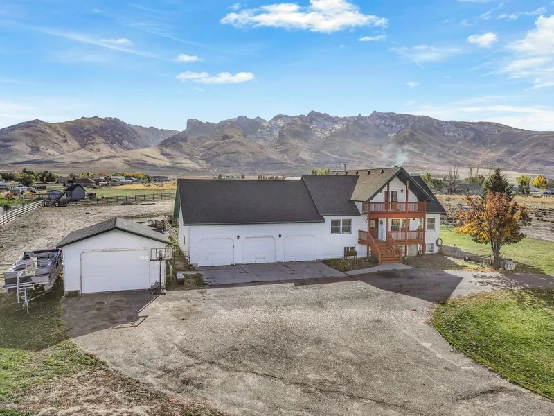 Welcome to this beautiful three-level farm-style horse property full of country charm, perfectly situated just off the back entrance of the Spring Creek Horse Palace, below the stunning Ruby Mountains! Offering 3,512 sq. ft. of living space, this home features 5 bedrooms, 3.5 bathrooms, and spacious design throughout. The inviting front patio and upstairs balcony with double doors add to the home's welcoming appeal. Inside, you'll find spacious rooms and a flowing layout - including a large kitchen that opens to the dining area, a generous living room with double doors to the side yard, and a cozy basement family room with a wood-burning stove. The newly updated primary bathroom adds a modern touch. Outside, enjoy a three-car attached garage plus a detached shop-perfect for hobbies, storage, or equipment. The 2.12-acre flat lot is fully fenced and cross-fenced, featuring green grass, mat...
