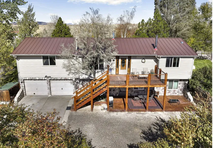 186 Edgewood Lane isn't just updated - it's been thoughtfully cared for and move-in ready! From the moment you enter, you'll appreciate the beautifully updated living area & kitchen with picture-perfect views of the Rubies! There's all new LVP flooring, a pellet stove and the spacious kitchen boasts stainless steel appliances & a farmhouse sink. There are 3 great-sized bedrooms and the primary suite offers a beautiful ensuite w/ a large shower, double vanities & walk-in closet. The fully finished walk-out basement is designed for entertaining with a family room & cozy pellet stove. Enjoy a custom Game Room with a pool table & a bar crafted from locally milled Whitebark Pine from Jarbidge, Nevada, adding a one-of-a-kind, rustic touch. Enjoy the amazing view from the front deck - or the downstairs patio! Updates adding long-term value and peace of mind include: a metal roof, tankless water heater, central air & new windows! The 1.48 acre property is fenced & offers mature landscaping with sprinkler system! There are 2 storage sheds and a dog-run. With spacious living areas, quality updates throughout, and unique custom features you won't find elsewhere, this home is a must see!
