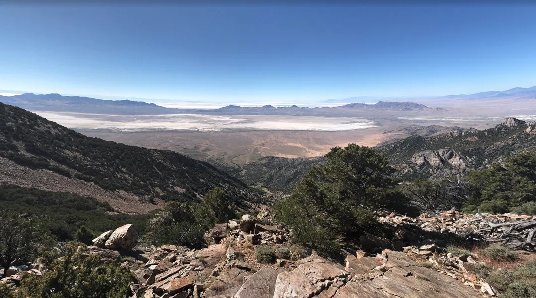 Hike up to the mountain range to the top of Pilot Peak, the tallest mountain in Nevada. As you can see, there are wonderful vistas above this site.