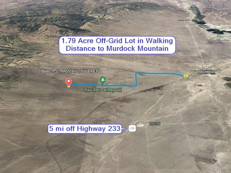 1.79 acre bordering BLM land and walking distance to Murdock Mountain in Montello, Nevada, Elko County, only 5 miles to Highway 233 with good dirt road access, no HOA, not in a flood plain, zoned Residential Acreage and no utilities, making it a great spot for camping or having an off-grid prepper property.