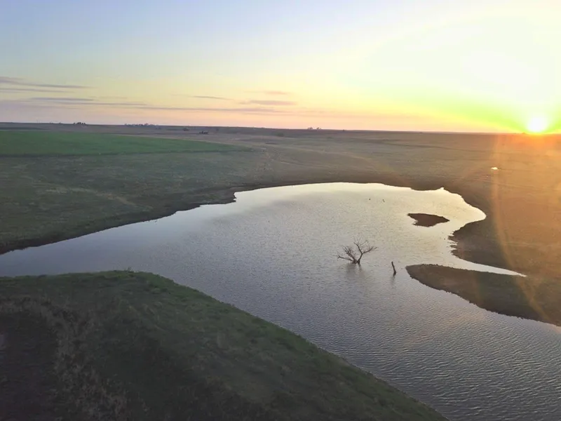 This awesome tract of land features a 1.5 acre pond, a spring fed stream, fertile tillable acres, and is situated in a very scenic and peaceful location less than 5 miles from Hays, KS. The main feature of this farm is the amount of water located within the roughly 64 acres of fenced grassland. This portion of the farm has a spring fed stream running through which feeds into the pond located on the west side. The pond has proven to be a waterfowl magnet during certain times of the year and will most certainly be a great fishing hole for the new owner and family. Finding a farm for sale with an established pond site this close to Hays is hard to come by. With the grassland being fully fenced, the buyer will have the option to graze livestock/horses or rent this portion of the property to provide income return from the land.