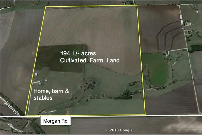Farm and home less than an hour from downtown Dallas. The land is approximately 192 acres in farm cultivation with a seasonal creek and stock tank on the north side of the property. In recent years only 102 acres of the property was farm land, however the owner decided to covert the remaining 90 acres of improved pasture into farm cultivation last year. The farmer leasing the ground is pleased with recent year's yields and would prefer to continue farming the land if possible. The home is 2231 SQ FT and has 3 bedrooms, 2.5 bathrooms, dining room, playroom, living room and a great wrap around front porch to appreciate the peaceful countryside. The home is two stories and is very well maintained. There is a detached three car garage and all structures have new metal roofs. The property also includes a 3384 SQ FT metal equipment shop and a 832 SQ FT stable with a tac room. There is also an old loafing shed down by the stock tank if you are interested in raising cattle or livestock. A customized flyer with a survey and more information is available upon requested.