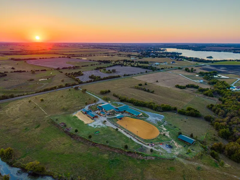 127.91 acres with amazing views! Approx. 30 minutes from DFW Metro. Lake Waxahachie minutes away. Open 4,000+/- sf Texas Themed home, competition quality arena, 5 stall stable, 65x20 covered parking with RV setups, resort-style pool, outdoor fire pit, 3-acre live water lake 45x70 reception room and large outdoor covered. Amazing sunsets!