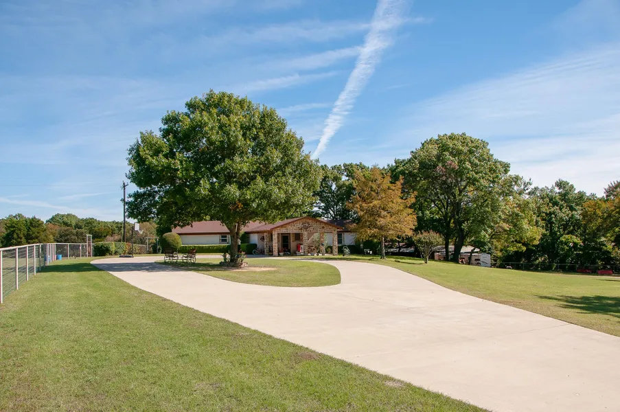 Immaculate, updated home on 8+ acres with trees & creek! Take a look at this comfortable home where the family can roam & the animals are welcome. Spacious living area, kitchen has beautiful granite counters, double oven, gas cooktop & tons of custom cabinetry. Awesome walk in pantry with room for freezer. Dining area is large enough for a farm table. Split bedroom arrangement. Huge master suite with updated master bath & great closet space. 2 sinks in the master bath! Utility room has great storage. Oversized covered back porch you will fall in love with. Fenced & cross fenced. Detached efficiency guest quarters 1 bedroom-1 bath with overhang for storage. Barn. Minutes from I-35 for an easy commute to DFW.