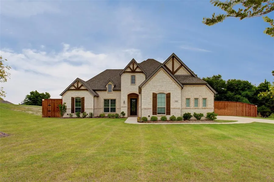 Beautiful custom John Houston home in sought after Bryson Springs. Premium lot- 1.5+acres, heavily treed with a peaceful creek along side of property. Open concept with soaring ceilings features 4 beds, 3 full baths, office, game room, 3 car garage and a large covered patio. Gorgeous wood beams line the dining, living room and master bedroom ceiling, wood floors, remote blinds in living room-this home is a MUST SEE! Rod iron fence encloses the whole back yard with gates to the creek, Wood fence on both sides of front, double gated on creek side, single gate opposite. Ring doorbell, Ecobee thermostat, Craftsman bench & cabinets, refrigerator all stay. Go & Show