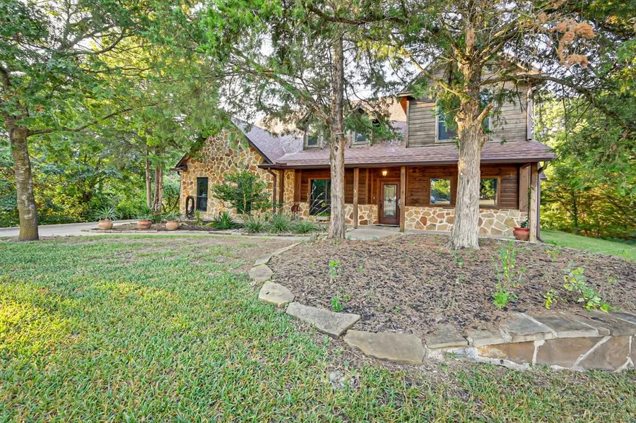 Country setting on acre+ lot at end of quiet culdesac*Covd front porch,mature trees,landscaping add to wonderful curb appeal*Stained concrete floors in spacious foyer*Immediately off foyer is office currently being used as 4th bedroom*Dining Area has wonderful views of backyard*Impressive Kitchen features abundant cabinetry,beautiful granite countertops,stainless appliances,walkin pantry*Large living area features wood flooring,attractive stone fireplace*Primary Bedroom down has ensuite bath with garden tub,sep shower,sep vanites,custom walk-in*Oversized Utility*Upstairs is large Gameroom,2 more Bedrooms,full Bath*Covd Patio & large deck overlook private treed backyard*Storage Shed*Side entry garage!