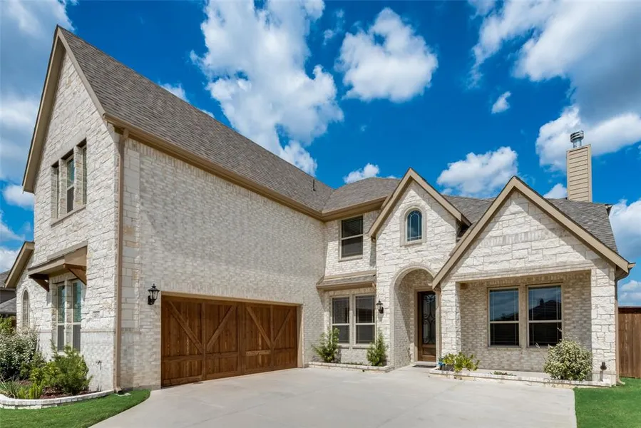 This stunning 5-bed, 4-bath home offering an exquisite blend of modern design & timeless elegance as you step inside, you're greeted by tall ceilings & an open-concept layout with incredible sightlines. The white kitchen, complete with wall oven & microwave, under-cabinet lighting, & a massive walk-in pantry, will delight any culinary enthusiast. Natural light floods the space, highlighting the neutral palette & amplifying the airy, spacious atmosphere. The living room boasts soaring 20-foot ceilings including a stone-to-ceiling WBFP that serves as the focal point of the home, perfect for cozy evenings. Large bedrooms w- walk-in closets ensure ample storage & comfort for all. Outdoor enthusiasts will appreciate the covered porch & patio, lush stone landscape beds, & the privacy afforded by the greenbelt lot. Landscape lighting accentuates the home's beautiful exterior & light brick & sto...