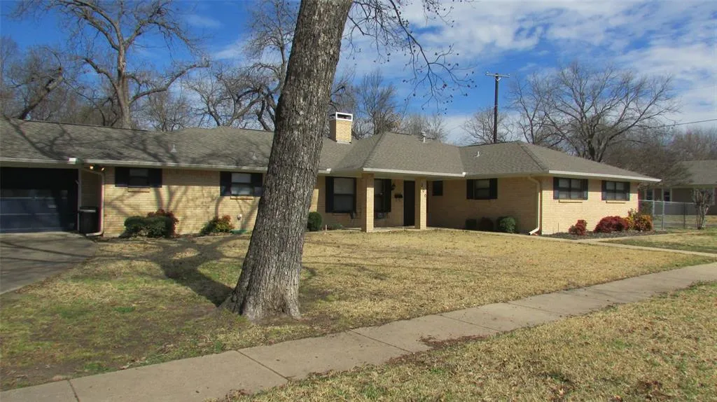This home was built BY a local home builder in 1978 then Loved and Maintained from 2006 by the present owner. Handicap Friendly with ceramic tile floors and wide doors Makes It Special in Market Competition. Don't overlook the convenience of the Location that is only 3-4 blocks from 5 Church's, the Post Office, City Hall, restaurants, and our quaint Downtown. Foodies will be drawn to the SPACIOUS OPEN KITCHEN with it's SOLID OAK CABINETRY and that the built-in appliances are spaced where you can prepare, cook and serve with ELBOW ROOM, while your audience enjoys the open space to watch, talk or join the culinary fun. Thereby, the chef is not lost in preparation for the party. The mid-home hallway is lined with more SOLID OAK CABINETRY that includes a gun rack and storage secured with locks and keys, a treasure to be enjoyed. A glimpse of the Site Survey, copy in NTREIS, gives clearer evidence of the rear and side yard concrete walkways enclosed in the chain link fence. The real surprise is the large, Out-Of-Sight Oasis-Of-Privacy with patio, walkways and artificial turf clustered in the enclosed back porch all WITHIN the chain link fenced area (see survey). I almost forgot the 5 towering (estimated at 50'+ height) mature PECAN TREES, and please notice the real storm windows that logically out-perform the current fad, double pane windows.