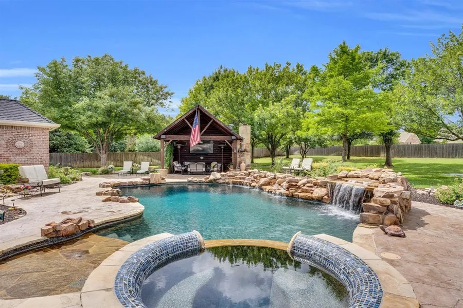 New price on this hard to find home in Midlothian's Plum Creek subdivision! Well-maintained custom home offers a seamless blend of indoor comfort and outdoor luxury. Step outside to your private backyard dream oasis! Heated salt water pool with spa allows you to enjoy year around, complemented by a stylish cabana with stone fireplace ideal for lounging or hosting guests. The outdoor kitchen, complete with a built-in grill, refrigerator, sink & outdoor bar seating is perfect for outdoor dining year round. The thoughtfully designed layout provides ample space for both relaxation and entertaining, featuring generous living areas, a modern kitchen, and tranquil bedroom retreats. Floorplan offers formal dining, living, study & split bedrooms making it a versatile space to fit your needs. Spacious master with tray ceiling & private access to backyard, separate vanities, jetted tub & oversized ...