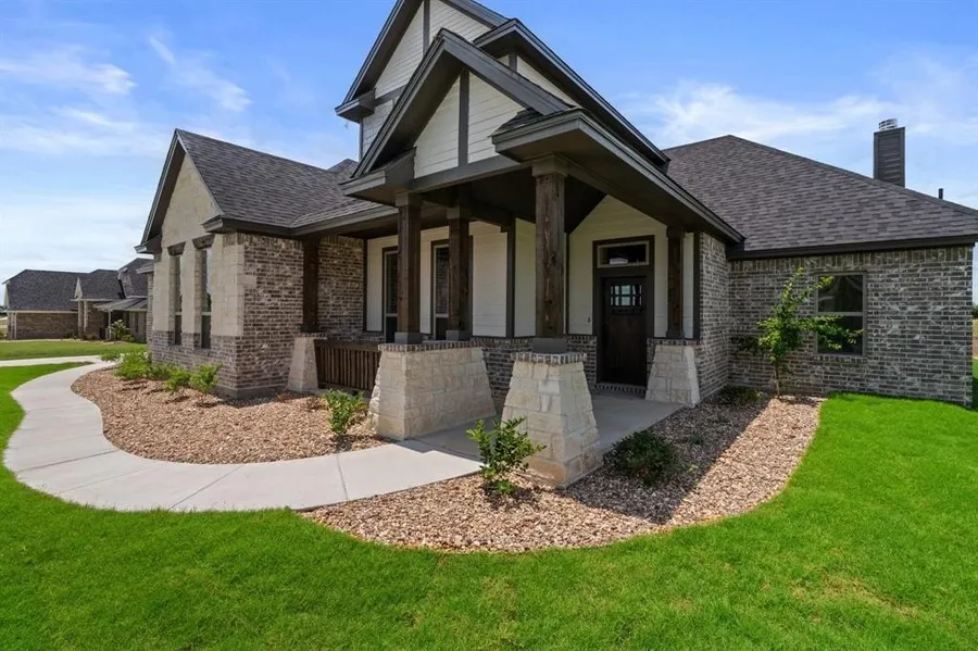 **Builder offering $15,000 to the buyer! Use it toward closing costs or take it off the sales price—limited time offer on this home only!** Welcome to this beautiful brand-new home by Tree Hill Homes, perfectly situated on a spacious one-acre lot with no city taxes and just minutes from I-35E. Enjoy the peaceful feel of the country with easy access to shopping, dining, and commuting—truly the best of both worlds. This thoughtfully designed home features large bedrooms, a dedicated office, and a versatile game room—plenty of space for work, play, and everything in between. The open floorplan is full of natural light and showcases custom knotty alder soft-close cabinets, an oversized kitchen island with upgraded granite, and stylish black lighting fixtures throughout. You'll love the floor-to-ceiling stone wood-burning fireplace, oversized secondary bedrooms with large closets, and elegant quartz countertops in all bathrooms. The 3-car garage is oversized (with 8’ doors!), dropped with Hardie board baseboards, and roomy enough for a large truck, SUV, and more. Enjoy peaceful mornings or relaxing evenings on the covered front and back porches, surrounded by nature and fresh air. Bonus: Home is now 100% complete, and yes—gutters have been installed (they just didn’t make it in the photos!). This home combines modern comfort, smart design, and country charm—you really have to see it in person. Schedule your showing today!