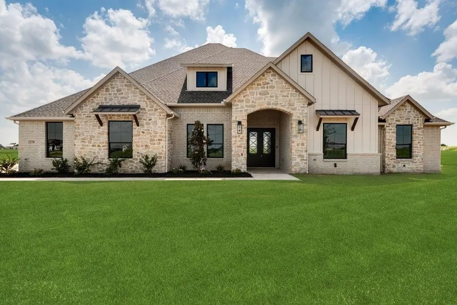 PRICE DROP! It your time to come and see! Enjoy this beautiful, NEW home by LMC Custom Homes on 1-acre lot in Waxahachie. Located in quiet & peaceful, country setting at The Ranch at Stonehill neighborhood. NO CITY TAXES. 4 bed, 3 bath, with office. Oversized 4th bedroom can be used as gameroom-flex space. You'll love the open floorplan with plenty of natural light, high ceilings & beams, specialty ceilings and wall accents. Family area with floor-to-ceiling stone fireplace. Home was custom designed with specialty touches throughout including elegant farmhouse fixtures. Entertain in spacious kitchen with GAS cooktop, gorgeous cabinets up to ceiling, large sit-in island, high end quartz countertops, PLUS hidden pantry. Large master bedroom & bath with HUGE master closet. Drink your morning coffee on back patio and enjoy country bliss. Don't miss out on this hidden gem!