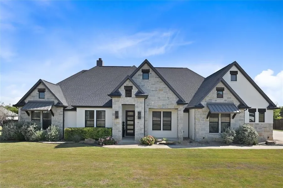 An absolute standout! Custom home in sought-after Summit Estates—just minutes from HWY 287 or I-35. Sitting on over 1 acre, this gorgeous property features designer finishes, wood-look tile, 4 bedrooms plus an office, and an open-concept living area with wood beams, built-ins, and a gas fireplace. The kitchen impresses with custom cabinetry, double ovens, gas range, farm sink, and great natural light with electronic shades. Spacious split master suite includes a spa-like bath with wet room, dual sinks, and a huge 10x15 closet. The 4th bedroom has an ensuite bath, perfect for guests or a mother-in-law suite. Additional highlights: flex room, dry bar, and 3-car garage. Outdoors, enjoy a luxurious infinity-edge pool with dip pool, ambient lighting, high-end finishes, turf, travertine pavers, two gazebos, a fireplace, and covered porch—an entertainer’s dream.