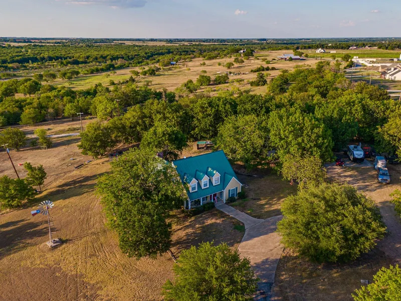 This amazing view! Breathtaking sunsets on this ridge overlooking a view of the Dallas skyline. Move to the country in this adorable 2 story farmhouse on 12 acres. Master bedroom and 2nd bedroom on 1st floor! Current owner using one downstairs bedroom as office. Relax after a long day in your master bath jetted tub then retreat to the huge cover back deck admiring the amazing serene view. 2 tanks on the property and word has it that one is approx 35 ft deep. Drought might currently say otherwise. Large workshop with 3 car bay had 2 garage door openers. 2 more bedrooms upstairs one with en-suite full bath. Perfect set up for an extended family situation or guest suite. Can be used in many ways with the large upstairs rooms. Call to schedule your private showing. Please give 2 hours notice. Land is currently in Ag valuation but Buyer will need to apply for Ag with appraisal district.