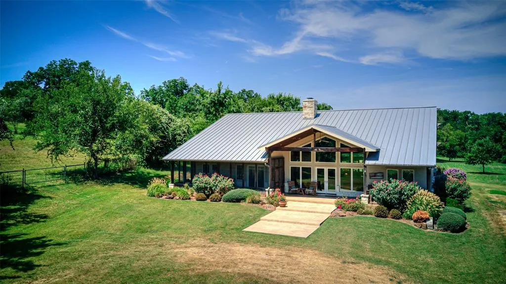 4 bedrooms, 3 baths, 60 + acres This show-stopping home will have you thinking you stepped into a luxurious lodge and resort. Stones, beams and beautiful stained concrete floors throughout the almost 3000 sq. ft house. A custom mudroom, an energy-saving metal roof, butcher block countertops deck out the kitchen with a true farm sink are just a few perks here. A wrap-around porch equipped with fans and plenty of room for those rocking chairs walks you right out to the fire pit, and a pergola and an outdoor bar. A spacious sunroom to have that morning coffee while overloking the property full of trees. You don't want to miss this fantastic opportunity to own this dream property right here in Ellis County TX!