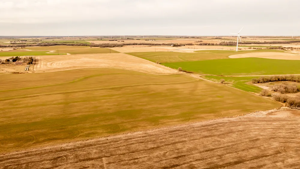 Located in Ellsworth County northeast of Black Wolf is 110 +/- acres available for investment. This beautiful hilltop farm has well maintained terraces, clean waterways and an income generating wind turbine. The soil is a combination of exceptional silt loam scoring 66 NCCPI. This means substantially above average yields for the area. This area of Ellsworth County records an average annual rainfall of 28 inches of rain. The farmland is bordered by two rocked roads for all-season access and available electricity. There is currently 70 +/- acres planted to wheat on a crop share. Possession of these acres would transfer after 2025 wheat harvest. 34 acres are idle in milo stubble, these acres will be available for immediate possession and spring planting. Cool season grass waterways make up the balance of the acreage, these areas are clean and make great forage bales each year. The mineral rights are owned by the seller and transfer at closing. The wind turbine is located conveniently on the South end with a short access road. The seller’s wind rights and the substantial income generated from the lease shall transfer to the buyer. The estimated ROI for total farm income is between 4% & 5%. This would make an excellent investment to diversify your portfolio. The farm is located in a high demand area known for its productivity and would make an excellent addition to any farm operation. Close to Interstate 70 and the Historic City of Ellsworth, this would make for an easy tillable investment to visit or even potential build-site. Quality properties like this do not become available often, so don’t hesitate. Contact the Listing Agent Sean Thomas (620) 712-2775 to view disclosures or to Schedule a showing.