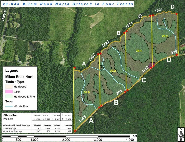 Great tract to build on, hunt or just grow timber 961 feet frontage on Milam Road.  1,223 feet of beautiful creek frontage is north property line.  Heavily timbered with large pine and hardwood.  One of four contiguous tracts. Ask agent about a discount for multiple tract purchase.  Great location: Wind Creek Casino Wetumpka 7 miles, Kowliga Lake Martin 19 miles, Jordan Hare Stadium 48 miles, East Chase Taylor Road 24 miles.