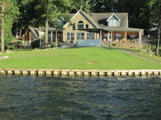 Lake living at its finest! Big water views with approx. 375ft of waterfront with a new seawall. This spacious, custom-built home sits on a 1.05-acre lot and boasts 3 huge bedrooms and a cute 4th bedroom. It has 2.5 baths for over 4000 sqft of living space. All rooms are big with storage everywhere! There is a covered outdoor kitchen and a patio with a fire pit. Wide porches (12ft deep) offer shade and plenty of room for entertaining. There is a double slip boathouse and a wired workshop with over 1000 sqft that is a handymans dream. There is also a huge bonus room upstairs (36x16). Attached 2 car garage. Master bedroom located on the main floor is over (16x17) with plenty of room for a sitting area. The master bath has double sinks, an extra big, tiled shower with triple shower heads and a seat and a large walk-in closet. The living area has breathtaking views through two-story windows a...