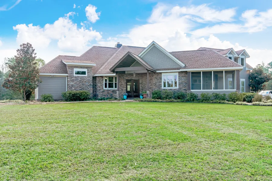 Southern charm at its very finest! This Modern-Rustic 3,169 sqft one owner custom 4BR 3.5BA beauty is situated on 18 amazing acres located just outside of Wetumpka. This one has it all: open floor plan; incredible views from every room, Huge kitchen w/granite tops, tile backsplash, walk-in pantry with hidden door to laundry, and a massive island including even more cabinet storage; Grand greatroom w/18 ft vaulted tongue and groove wood ceiling; handsome 18 ft stacked stone fireplace w/custom Napoleon wood burning insert; surround sound and beautiful views through the set of double French doors; sep study, upstairs teen suite, and a master suite fit for royalty! The master bath is absolutely stunning! There are dual vanities both with exotic granite, an elegant jetted tub, and quite frankly the largest shower I have ever seen! Shower is 5x13 and includes a massive seat, dual heads, a sepa...