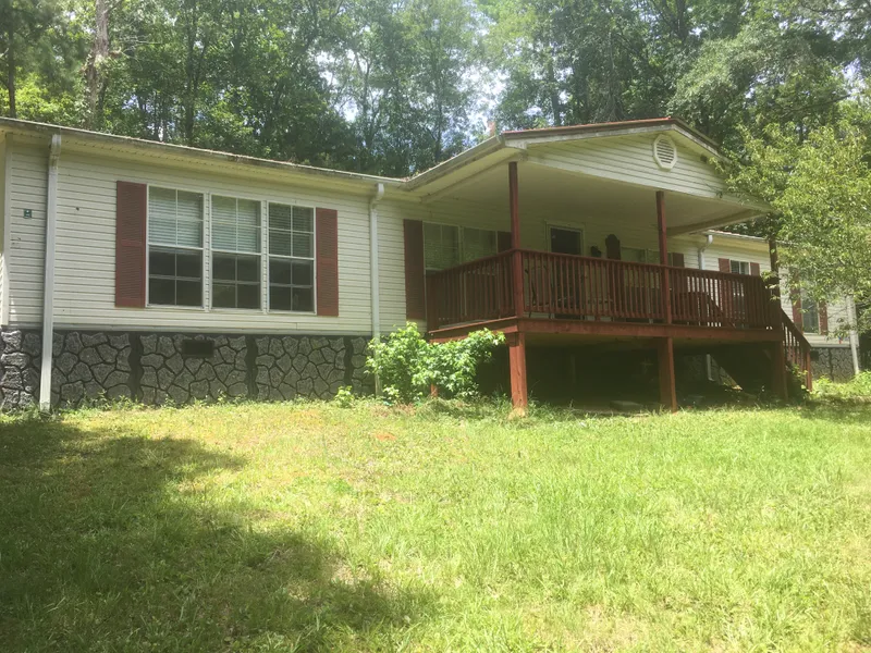 This is not your normal mobile home. It was custom built and was on Lake Martin at one time. Oak cabinets in kitchen, dining room and baths. Carpet and oak laminate floors. Sits on a 3.2+- acre lot. There is a stream along the back of property and outbuildings to use for storage or workshop. Has a front covered porch and back deck.