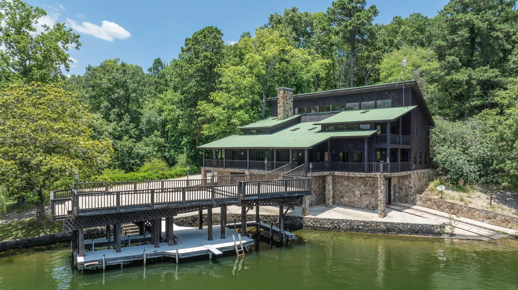 Unique, custom-built, waterfront home on Lake Jordan. Great home for family and entertaining. Large family room with huge, local gathered stone fireplace, wet bar, high ceilings, and spectacular views. Half bath off of living room area. The kitchen has a Jenn Air range, lots of cabinets, a pantry, and a dining room. The main bedroom has a cedar-lined closet and an oversized bathroom, including a jetted tub and sauna room. There’s another suite on the main floor including a jetted tub and separate shower. Upstairs there’s an office/tv room, recreation room, bar, balcony and three more bedrooms, one with fireplace. Three full bathrooms. There are also two sleeping lofts on the second floor. The home has a basement with a boat ramp with a power winch and carriage for a large boat for inside storage. Also equipment and tool storage rooms and another huge bay with a roll-up door. There’s a la...