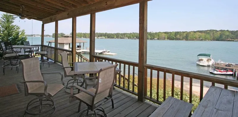 Lake Martin cabin in the Real Island area with year around water and great views! Cabin has 3 bedrooms,2 baths, big family room and great lakeside porch. Owner just finished with nice improvements including hardwood floors, geostone seawall, landscaping and more! Lakeside enjoy great swimming, boat ramp and dock with a covered hydraulic boat lift, storage and more!