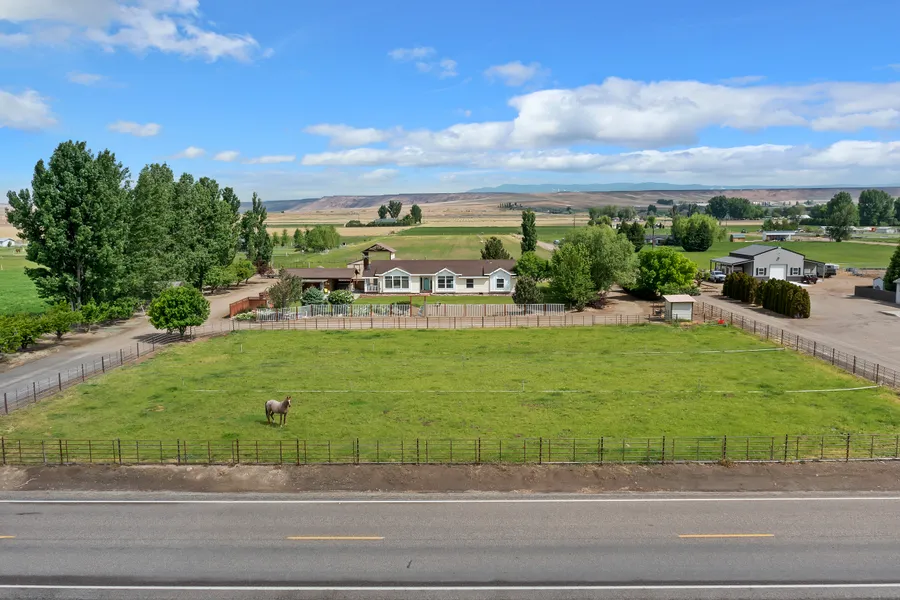 Don't miss this well maintained acreage in Hammett. New seeding alfalfa, pasture and a beautiful 2900 sq ft home. Custom Guerdon with vaulted ceilings, oversized new vinyl windows, Pergo floors, new gas down-draft gas cooktop installed, gas fireplace, oversized hallways. King Hill Water shares, underground utilities, frost free hydrants. fruit trees, covered patio, garden shed. New painted exteriors and new rain gutters. Carpet cleaned and stretched. Great views of the mountains and valley, close to Snake River. Great rural location. Any and all types of livestock are allowed. Pastures for horses or cattle. Property has a 2,000 sq foot garden area, including established strawberries, and herb production, fruit trees, almond trees, cherry, apple, apricot, nectarine, peach, pear and plum. Two grass pastures for animals and a new seeding of alfalfa.