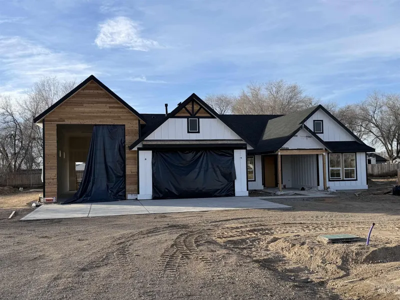 This custom single-level home offers 2,368 sq. ft. of thoughtfully designed living on 1 acre, featuring 3 bedrooms, 2.5 bathrooms, and an office/den. The oversized 3-car garage includes a full RV bay and additional shop space. Quality craftsmanship is evident throughout with quartz countertops, custom cabinets, tiled baths, engineered hardwood, and modern finishes. The vaulted family room boasts a cozy fireplace and large sliding doors opening to an extended covered patio—perfect for entertaining or relaxing.