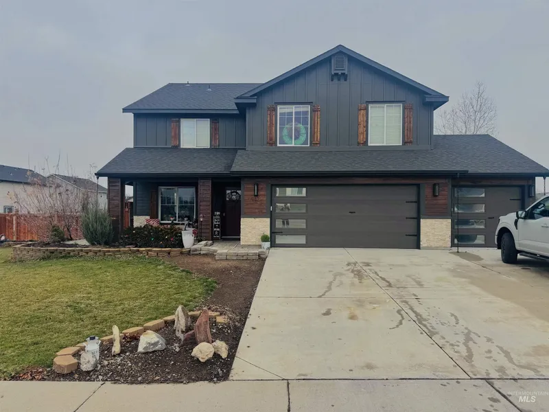 Beautiful two-story home on a spacious, landscaped corner lot over one-third acre., offering space, privacy, and exceptional curb appeal. This well-maintained property features a landscaped yard and an inviting layout ideal for modern living. The upgraded kitchen includes granite countertops, gas range, pantry, and a large island—perfect for meal prep and entertaining. The main level offers a bright living room, dining area, and a flexible 5th bedroom/home office. Upstairs, enjoy a spacious play area and four bedrooms, including a primary suite with double vanities and a separate tub and shower. The extended patio creates the ideal outdoor space for relaxing or hosting gatherings. A rare combination of space, comfort, and value.