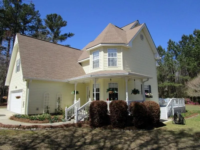 Lovely Victorian style home built in 2003 with 2,400 sq. ft. and 3 bedrooms and 2 bathrooms. The home is inviting with a spacious foyer and partially exposed staircase up to the landing which has beautiful window light. Family room has a gas log fireplace and opens into a large dining room. The dining room opens into the kitchen with island and breakfast nook with a bay window. Upstairs the master bedroom with master bath has large walk-in closet and a bonus room which can be used as a sitting area, office, or sewing room. One of the bedrooms has built-in bookshelves which can be used as an office. All window treatments throughout the house and lace canopy over master bed will remain with the house. Beautiful curved front porch and large back deck.